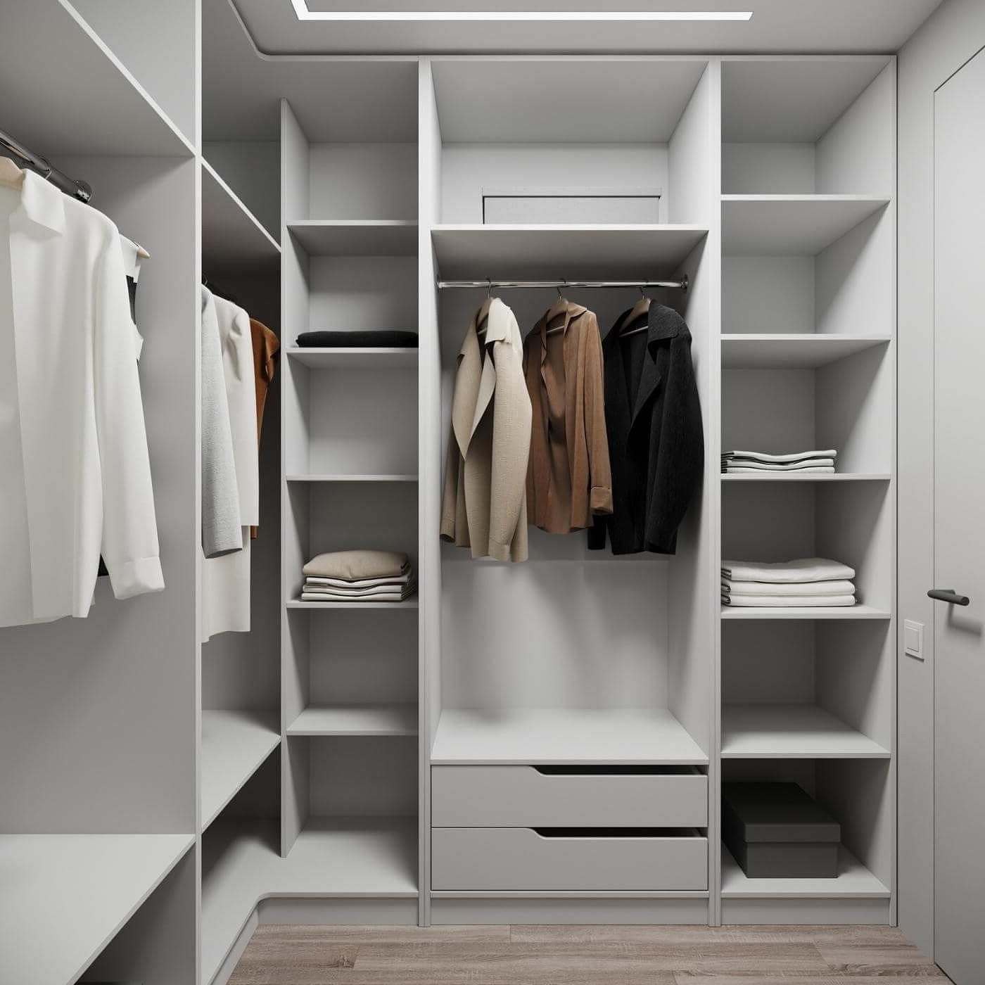 В грамотно организованной гардеробной каждая вещь имеет свое место, а доступ к одежде становится удобным и быстрым.