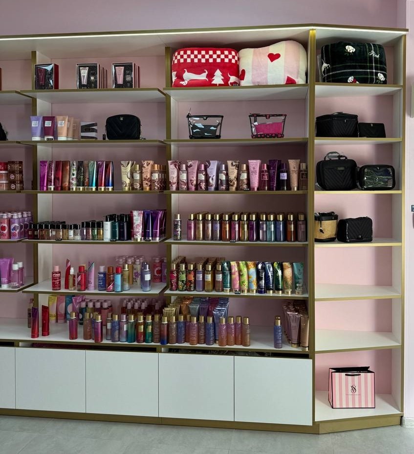 Проект мебели изготовленной на заказ выполнен в нежной цветовой гамме: белые фасады гармонируют с мягкими розовыми оттенками стен. Такое сочетание не только делает интерьер легким, но и выгодно акцентирует внимание на ассортименте. Пространство логично разделено: отдельные зоны предназначены для белья, косметики и аксессуаров, что облегчает навигацию по магазину и создает ощущение порядка.